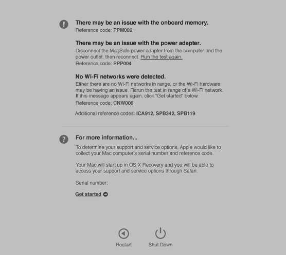 Máy Mac cũng có công cụ cài sẵn. Để sử dụng, khởi động lại máy và giữ D khi máy khởi động, bạn sẽ được đưa tới màn hình kiểm tra.