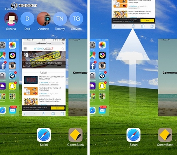 Vuốt lên để tắt ứng dụng