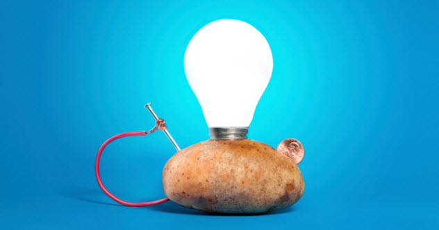 Nghe có vẻ khó tin, nhưng các nhà khoa học đã tạo ra những cục pin bằng khoai tây. Một củ khoai tây có thể thắp sáng được một bóng đèn LED, đủ cho một căn phòng trong một tháng.