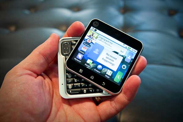 Bên cạnh thiết kế vuông kì lạ, Motorola Flipout còn khác biệt hóa bằng cách được trang bị một bàn phím QWERTY dạng xoay độc đáo.