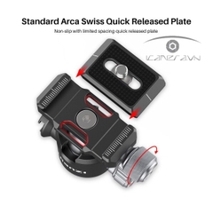 Tấm tháo nhanh kiểu Arca thiết kế mỏng đi kèm bao gồm sự an toàn vít chặn để ngăn máy ảnh vô tình rơi ra và một miếng silicon chống trượt để chống chuyển động của máy ảnh mà không làm hỏng bề mặt của máy ảnh.