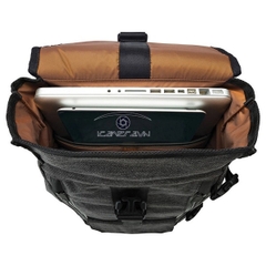 Nắp đậy lớn sẽ bảo vệ các thiết bị bên trong ba lô tránh các tác nhân từ môi trường, nắp đậy có khóa chắc chắn với thao tác đóng mở tiện lợi. Nắp túi được thiết kế ngăn phụ kiện có khóa kéo để cất các vật dụng nhỏ như điện thoại, chìa khóa, ví…. Phía dưới nắp túi là một ngăn nhỏ có dây buộc, móc khóa và một ngăn ẩn bên có khóa kéo phù hợp đựng tài liệu hoặc phụ kiện.