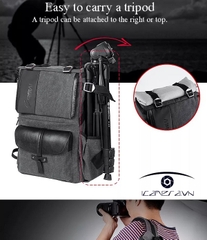 Về mặt tiện lợi sử dụng, chiếc balo này có 1 cửa mở ở phía sau lưng, 1 cửa mở từ phía trên đỉnh, và 1 cửa mở từ bên hông. Các ngăn hoàn toàn có thể thông với nhau để bạn dễ dàng lấy đồ từ trong ra 1 cách nhanh chóng. Đáng chú ý là tất cả các cửa này đều hướng về phía lưng người dùng, đảm bảo sự an toàn cho tất cả tài sản bên trong. Đây chính là thiết kế chống trộm đang ngày càng phổ biến ở các mẫu balo máy ảnh mới.