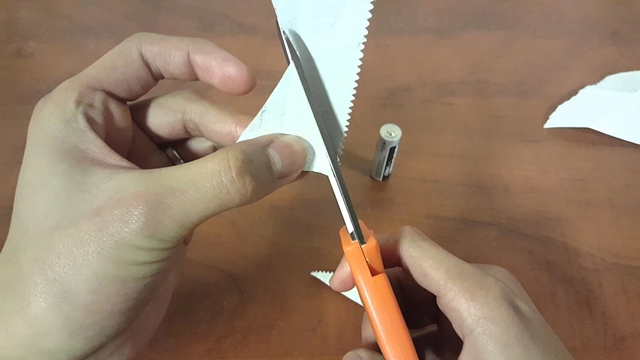 Tiếp theo dùng kéo để cắt phần giấy bạc theo hình bên dưới.