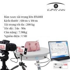 Bàn xoay BX60H quay 360 độ quay chụp sản phẩm cỡ lớn đường kính 60cm, trọng tải được 200kg, Tốc độ xoay 1 vòng: Trung bình 34-90 giây,