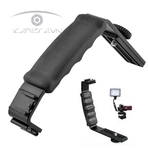 TAY CẦM CHỮ L VỚI 2 GÁ GÀI FLASH HOT SHOE VÀ ỐC ĐẾ 1/4INCH