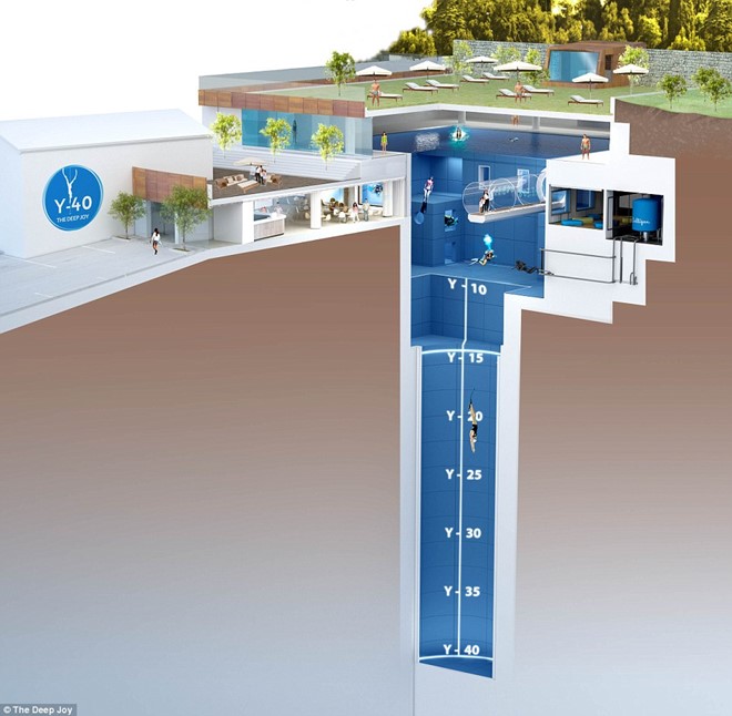 Bể Y-40 hay The Deep Joy ở Montegrotto Terme, Italy, là bể bơi sâu nhất thế giới, nơi du khách có thể lặn bằng bình khí hay học bơi như tiên cá.