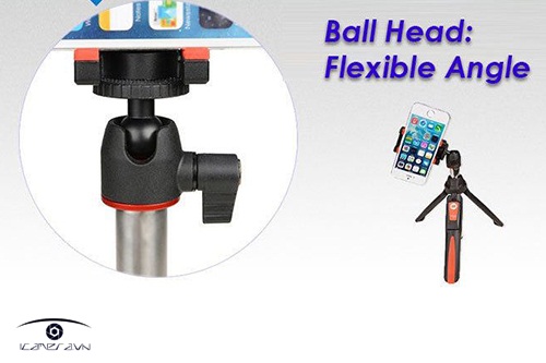 Sản phẩm có đầu ball head linh hoạt có thể xoay thay đổi vị trí của smartphone để quay chụp với nhiều góc đa dạng hơn.