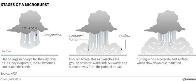 Theo Randy Cerveny, với vận tốc gió mạnh lên tới 270km/h như vậy, Microburst quá đủ để có thể lật tàu và đẩy máy bay xuống biển một cách dễ dàng.