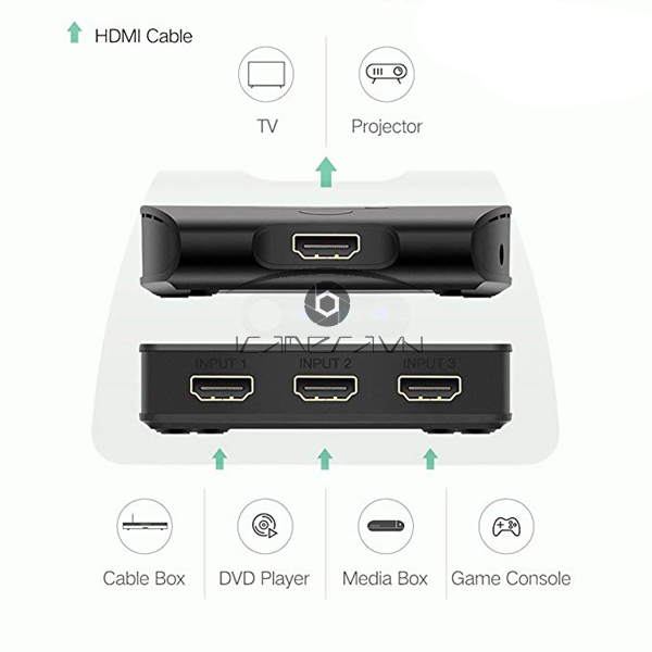 Bộ Chia HDMI 3 vào 1 ra Cao cấp Ugreen 40215 Full HD 1080P