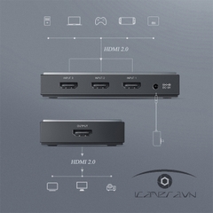 Bộ gộp HDMI 2.0 3 vào 1 Ugreen 50709 chính hãng hỗ trợ 4K2K@60Hz sử dụng để gộp 3 thiết bị hỗ trợ cổng HDMI như : máy tính, Macbook, TV box, đầu DVD, Playstation 3 (PS3)…vào 1 màn hình TV hoặc máy chiếu hiển thị hình ảnh