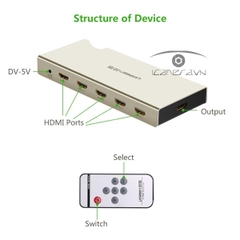 Điều khiển IR hoặc nút trên công tắc, bạn có thể chuyển trực tiếp trên bộ chia HDMI