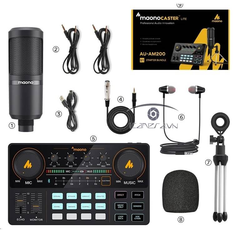 Hoạt động như một giao diện âm thanh cộng với trạm trộn. Tích hợp thiết bị trộn âm thành 1 giải pháp toàn diện. Nó cung cấp chất lượng âm thanh tuyệt vời và cung cấp khả năng kiểm soát trực quan và đầy đủ để tối ưu hóa hiệu ứng giọng hát và âm thanh. Gói thiết bị podcast S1 đi kèm với một micrô điện dung cho phép bạn bắt đầu podcast hoặc phát trực tiếp một cách dễ dàng ngay lập tức. Bắt đầu ghi âm khi bạn cắm vào điện thoại thông minh hoặc PC.