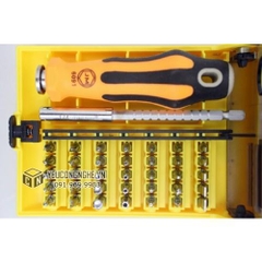 Bộ tô vít sửa chữa điện tử JM6091, tuốc nơ vít mở 35 đầu lựa chọn cho bạn. Tổng cộng bộ kit tiện lợi có 37 món giúp bạn sửa chữa, tháo mở chuyên nghiệp.