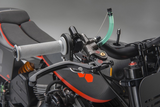 Những bộ phận có trên xe như tay lái hiệu Easton, kẹp phanh Brembo, đồng hồ công tơ mét Motogadget và nhiều chi tiết ốp sợi carbon giúp XR1R thêm phần khác biệt.