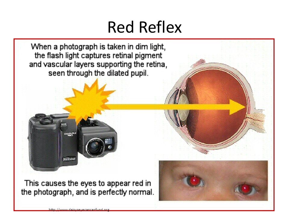 Đèn Speedlight sẽ chiếu liên tục một loạt ánh sáng trắng (tạch tạch_ – trước khi đèn nổ chính thức, nhằm xoá trắng và làm đồng tử của mắt người (hoặc thú vật) khép lại, giảm thiểu hiện tượng mắt đỏ.
