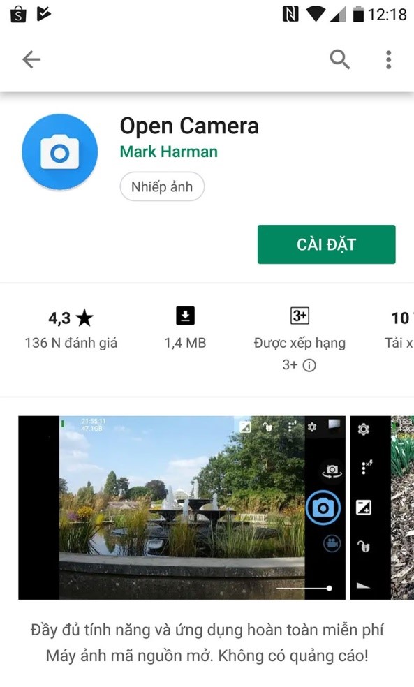 Tại giao diện CHPlay của Google. Bạn tìm từ khóa “OPEN CAMERA”. Sé hiện ra phần mềm này. Bạn bấm vào cài đặt và tải về. Đây là phần mêm hoàn toàn miễn phí nên bạn cứ yên tâm tải nhé!