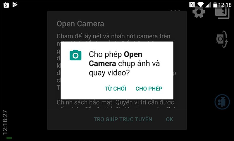 Khi vừa mở vào phần mềm. Opencamera sẽ yêu cầu một số quyền. bạn cứ bấm cho phép nhé. Tại mục này là cho phép truy cập camera
