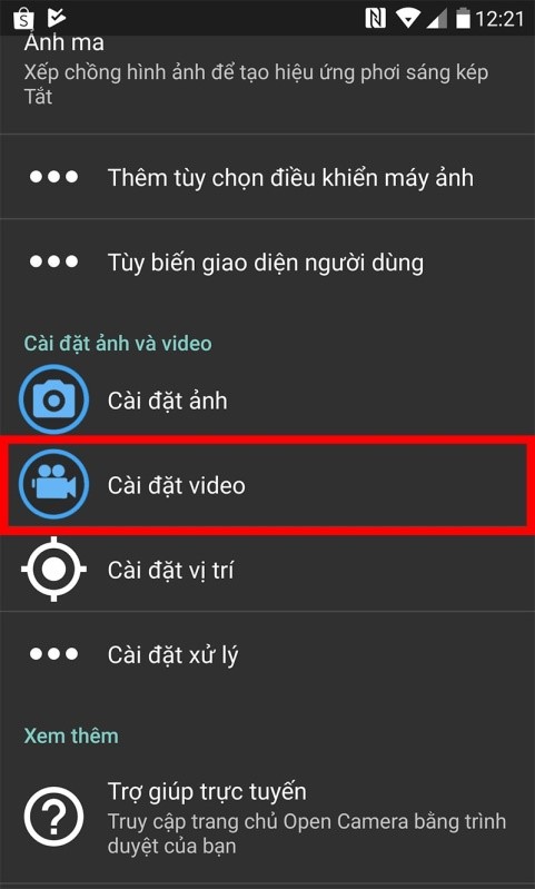 Và đây là giao diện setting của phần mềm. Bạn kéo xuống 1 tý là sẽ thấy phần được khoanh tròn. Bấm vào cài đặt video.