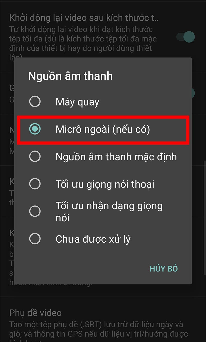 Ở đây chúng ta sẽ có 1 số các lựa chọn. Nhưng bạn đừng quan tâm đến những thứ khác. Chọn ngay vào phần “Micrô ngoài”. Sau đó thoát ra. Và thế là chúng ta đã hoàn thành rồi á.