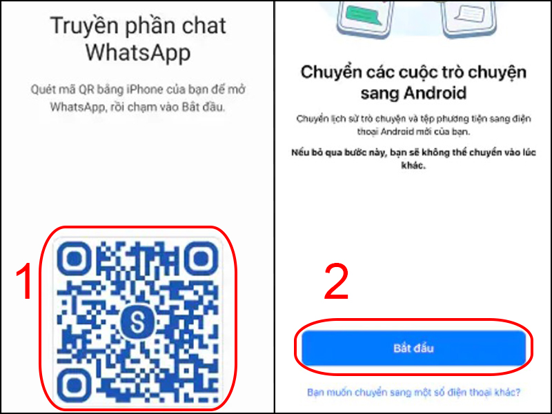 Bước 4: Sử dụng iPhone quét mã QR xuất hiện trên thiết bị Galaxy, sau đó nhấn Bắt đầu để tiến hành chuyển dữ liệu.
