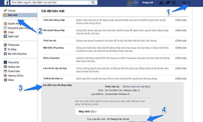 Người dùng có thể kiểm tra tất cả các thiết bị và vị trí khi đăng nhập vào tài khoản Facebook.