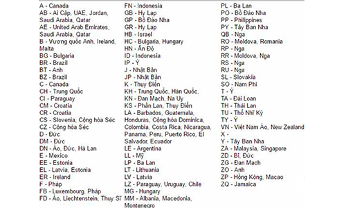 Vídụ như mã của mình trước gạch chéo A thì nó là ZA tương ứng với Singapore