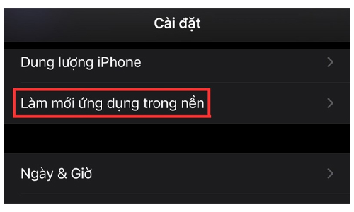 Bước 3: Mở mục Làm mới Ứng dụng trong nền.