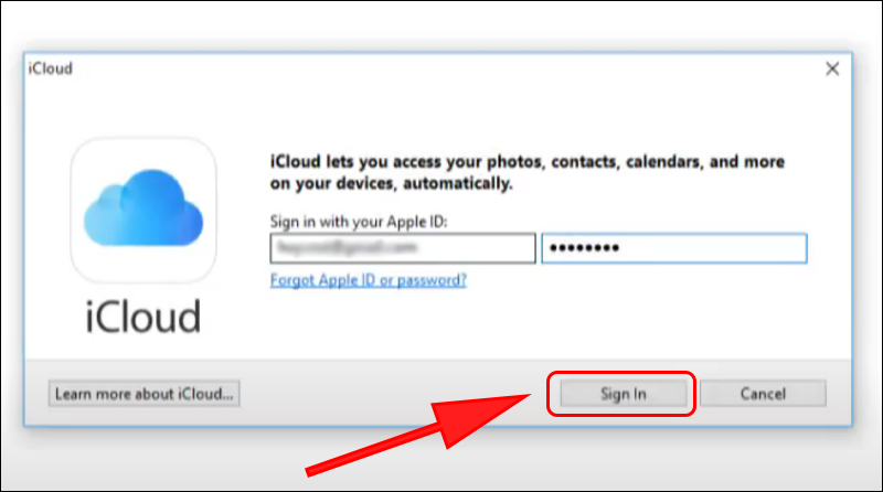 Bước 3: Dùng máy tính truy cập địa chỉ iCloud.com > Đăng nhập account iCloud của mình.