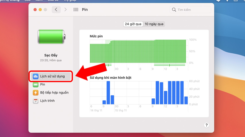 5. Cách xem lịch sử sử dụng pin trên MacBook Air 2020