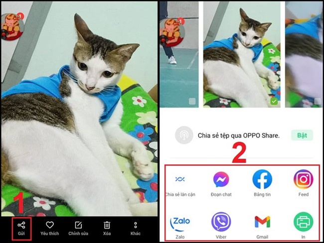 Vào album ảnh trên điện thoại > Chọn ảnh muốn sao chép > Nhấn chọn Gửi > Chọn ứng dụng muốn sao chép ảnh qua.