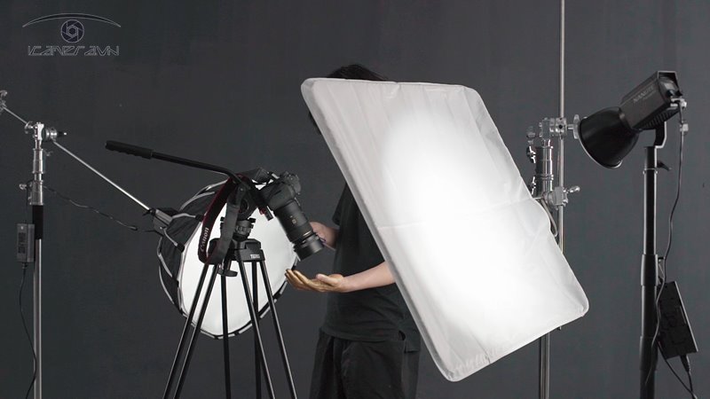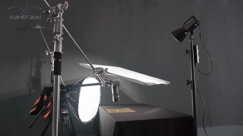 Cảnh này được quay cùng với sự chuyển động của vật thể. Một Forza 60 ở bên cạnh để tăng kết cấu của vật thể, một Forza 60 để bên cạnh làm đèn nền giúp nổi bật các đường nét