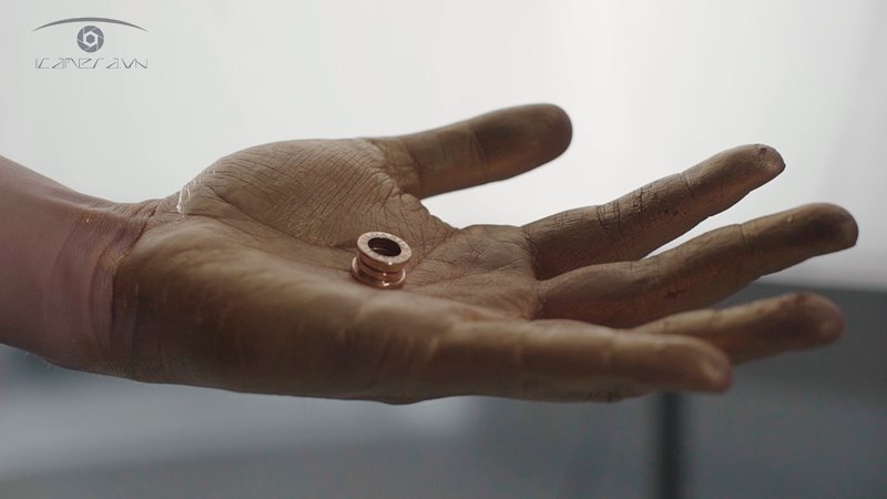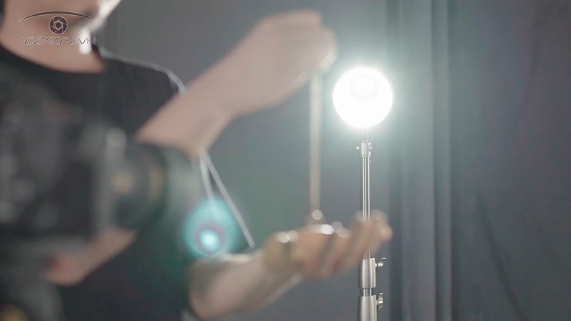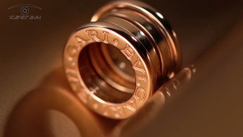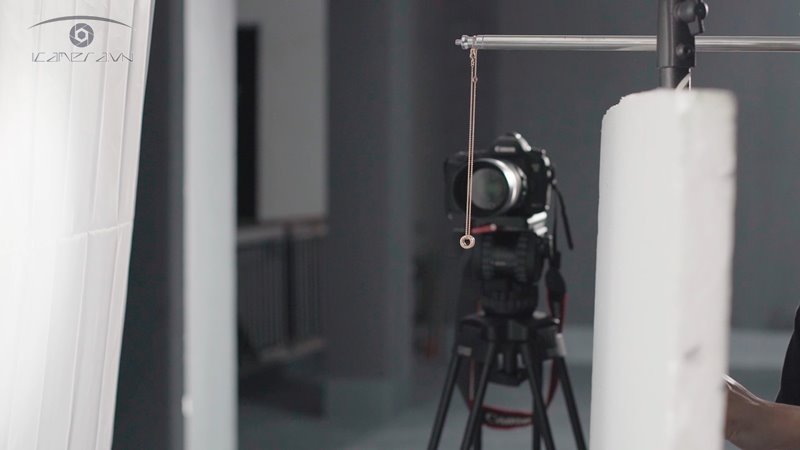Treo chiếc nhẫn lên và set up ánh sáng ở hai bên, lấp đầy ánh sáng ở phía bên phải bằng bảng xốp nhựa, vị trí camera là 90 ° với ánh sáng, sau đó xoay vòng chiếc nhẫn.