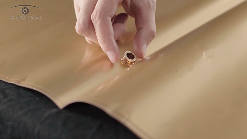 Trong ảnh này, chúng tôi cũng sử dụng giấy vàng nhưng với bề mặt cong, nó có thể chụp các góc khác nhau của chiếc nhẫn.