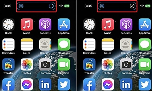 Dynamic Island được sử dụng như một chỉ báo trạng cho các tệp dữ liệu được thực hiện thông qua AirDrop. Khi có dữ liệu được chia sẻ với bạn, một chỉ báo sẽ xuất hiện trên Dynamic Island để hiển thị tiến trình của quá trình chuyển tệp. Sau khi quá trình hoàn tất, một dấu tick màu trắng sẽ xuất hiện như hình.