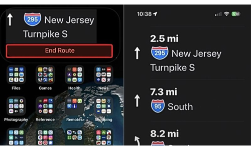 Việc điều hướng bằng Apple Maps cũng trở nên đơn giản và tiện lợi hơn khi có Dynamic Island, bạn có thể quay trở lại màn hình chính để xem chỉ dẫn từng bước trên Dynamic Island. Nhấn và giữ Dynamic Island để hiển thị bước tiếp theo hoặc tùy chọn kết thúc tuyến đường bằng cách chọn End Route (Kết thúc tuyến đường). Hoặc chạm vào Dynamic Island và ứng dụng Apple Maps sẽ mở ở chế độ toàn màn hình.