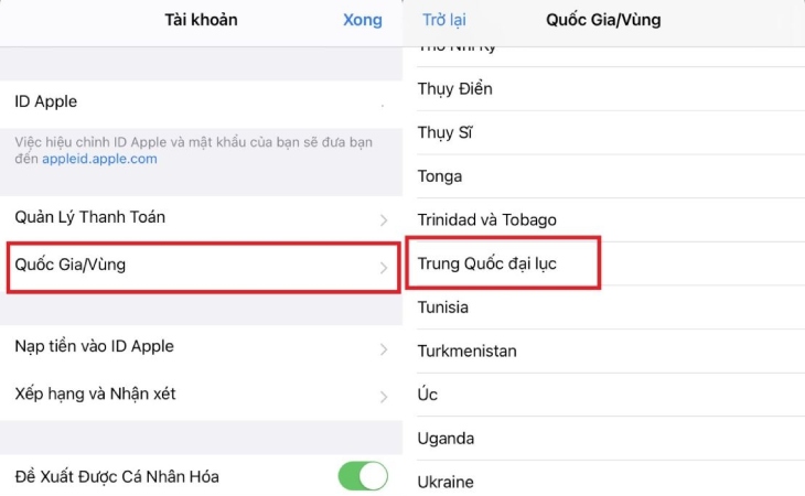 Vào App Store, chọn biểu tượng tài khoản bên phải, chọn Quốc gia/Vùng, chọn Thay đổi Quốc gia hoặc Vùng, chọn Trung Quốc đại lục.