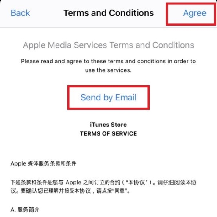 Bước 2: Chọn Send by Email và điền mail bạn đã đăng ký ID Apple vào, sau đó kéo xuống đồng ý các điều khoản.
