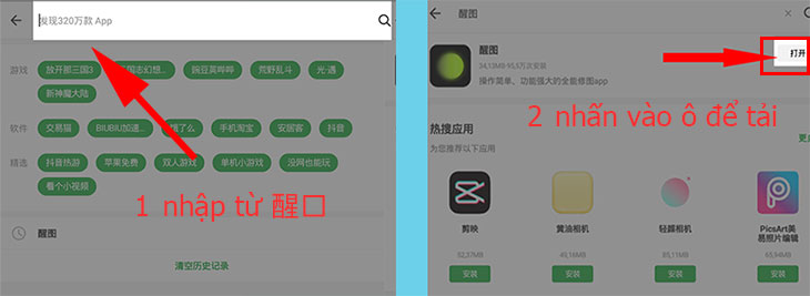Bước 6: Tại ô tìm kiếm của ứng dụng nhập từ khóa 醒图 vào ô, bấm tìm kiếm
