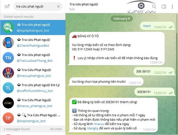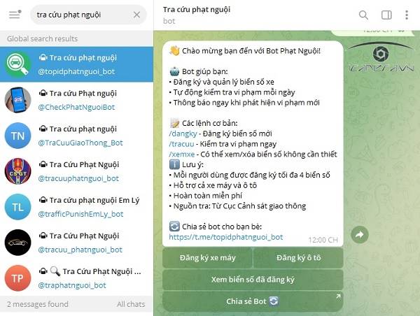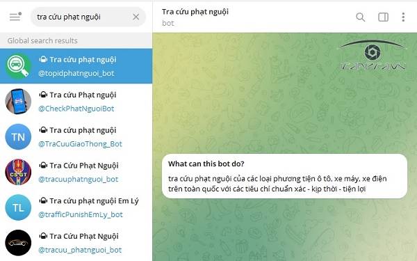 Hướng dẫn tra cứu phạt nguội trên Telegram