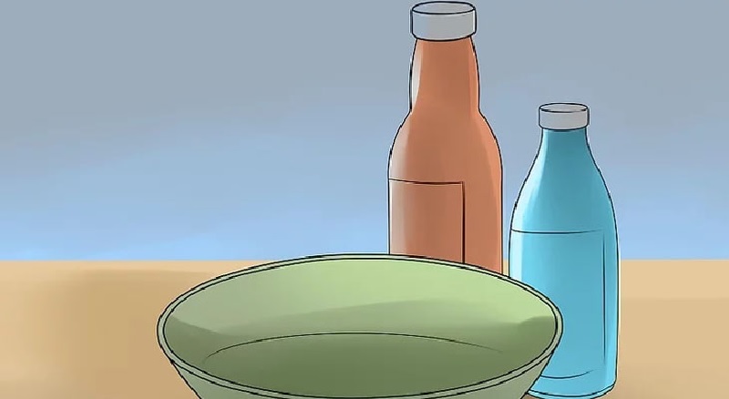 Bước 1: Dùng bọt biển thấm nước, vắt khô sau đó thấm một ít chất tẩy lên.