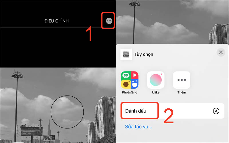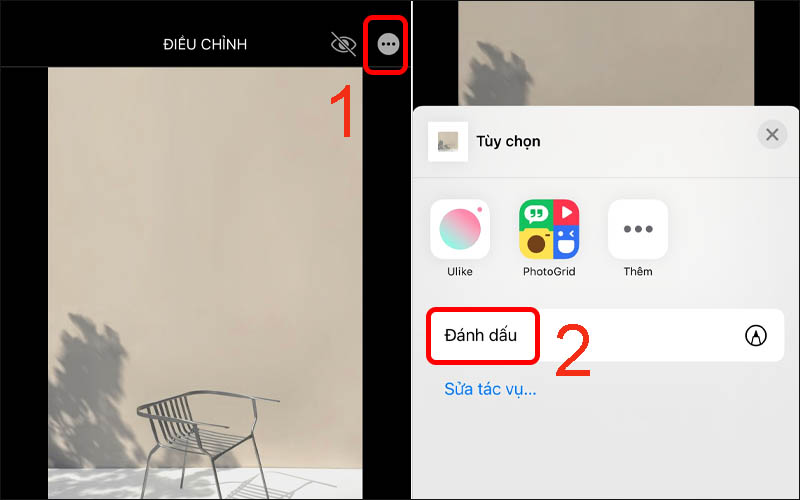 - Bước 2: Chọn biểu tượng 3 dấu chấm ở phía trên cùng ảnh > Chọn Đánh dấu.