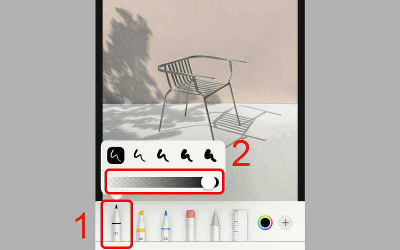 - Bước 3: Chọn kiểu bút muốn dùng > Chọn nét bút bằng cách kéo biểu tượng sang trái phải.
