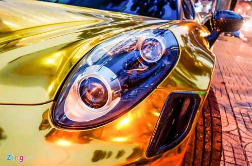 Sau trào lưu dán decal chrome, những người chơi xe tại TP.HCM lại rộ mốt dán wrap mạ vàng. Với chi phí thấp hơn so với mạ vàng 24K, decal vàng vẫn tạo được độ bóng như vàng thật nhưng có thể bóc ra khi chán và ít bị bong tróc.