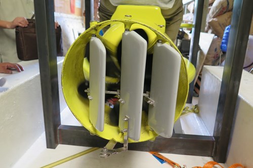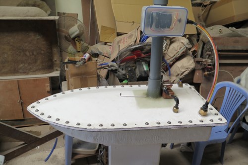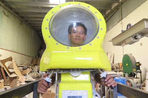 Một phần của buồng láiÔng Phan Bội Trân (phải) rất tâm huyết với dự án tàu lặn này