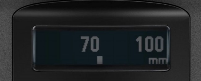 Trên ống kính có một màn hình hiển thị thông tin ống kính. Theo bước của Zeiss, Canon cũng thêm một màn hình điện tử này. Trong chế độ mặc định, màn hình này sẽ hiển thị khoảng cách đến chủ thể cùng với độ sâu trường ảnh.