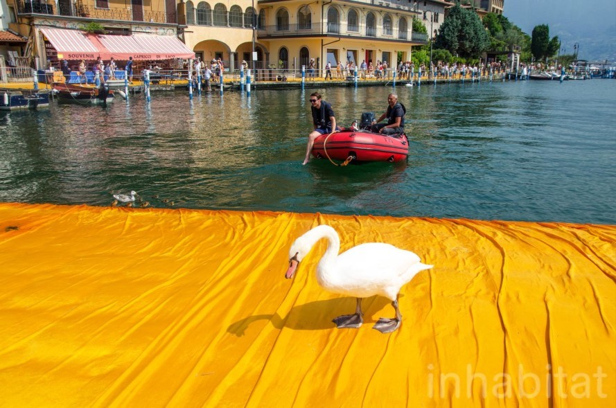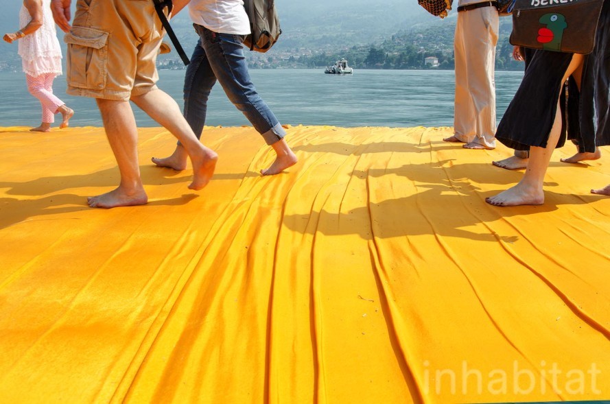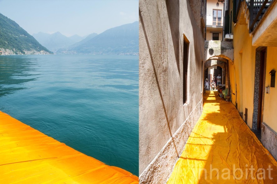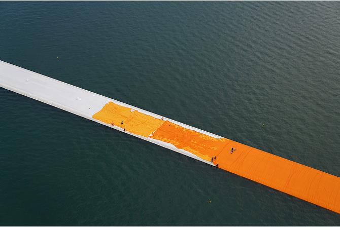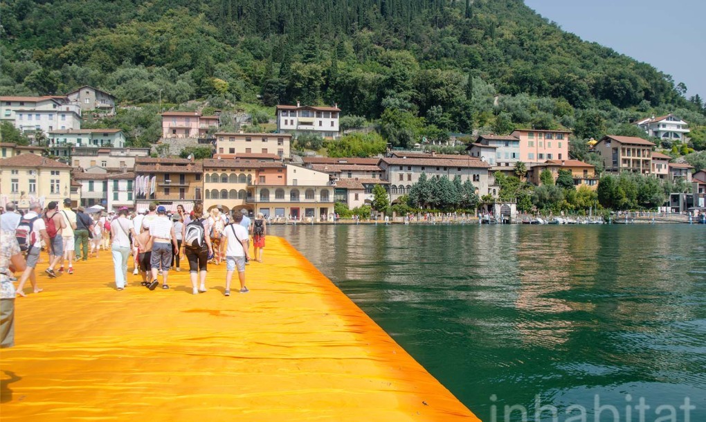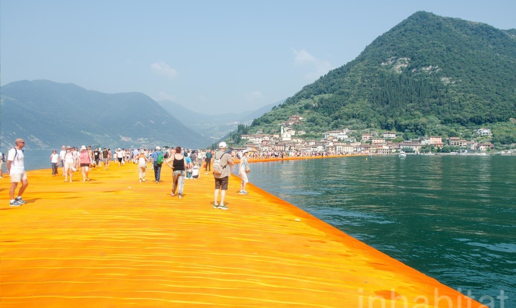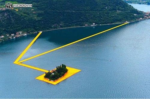 Theo Inhabitat, đây là một tác phẩm sắp đặt nghệ thuật trên hồ Iseo gồm các khối lập phương làm từ vật liệu tái chế và được bọc trong những miếng nilon màu vàng cam nổi bật. The Floating Piers được thực hiện bởi nghệ sĩ sắp đặt nghệ thuật nổi tiếng người Mỹ là Christo Vladimirov Javacheff và đã trở thành một trong những địa điểm thu hút khách tham quan nổi tiếng nhất của nước Ý xinh đẹp trong thời gian qua.