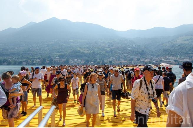 Từ khi cây cầu nổi độc đáo mang tên The Floating Piers đi vào hoạt động đến nay, hàng trăm ngàn người đã đổ xô về miền Bắc của nước Ý để "đi bộ" trên mặt nước.