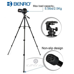 Chân máy được sử dụng công nghệ hỗ trợ mới nhất của hãng Benro danh tiếng, giúp hỗ trợ thiết bị của bạn tốt hơn. Sản phẩm được trang bị một đầu 3 chiều hỗ trợ tải lên đến 5,51 lb và phù hợp cho cả việc chụp ảnh và quay video clip.