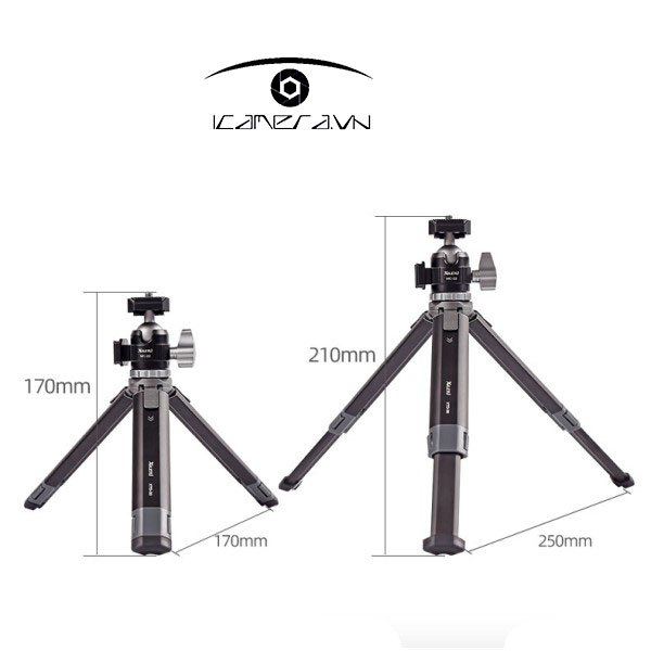 Giá ba chân có 2 phần chân có thể điều chỉnh độ cao. Trọng lượng 285g & chiều dài 210 mm, thiết kế siêu nhẹ & nhỏ để dễ dàng di chuyển.